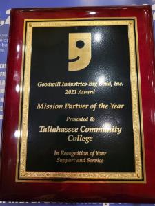 Tallahassee Community College (TCC) has been named by the Goodwill Industries - Big Bend (GIBB) 2021 Mission Partner of the Year. The College was recognized at the 2022 Annual Meeting and Power of Work Banquet on Wednesday, May 4.